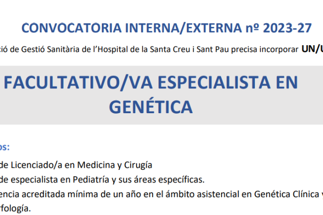 CONVOCATORIA FACULTATIVO/VA ESPECIALISTA EN GENÉTICA